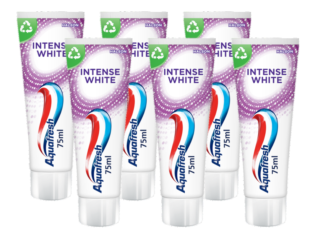 Aquafresh Tandpasta Intense White is een dagelijkse tandpasta die met de microparel-formule vlekken op milde wijze verwijdert. Wanneer u tweemaal per dag poetst wordt de natuurlijke witheid teruggebracht en het is klinisch bewezen dat de intense white tandpasta helpt op deze