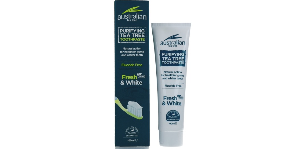 Australian Tea Tree Fresh & White Tandpasta voorkomt, bij regelmatig poetsen, de opbouw van tandplak en tandsteen. Naast de antiseptische voordelen van Tea Tree olie, bevat deze unieke tandpasta ook de verzachtende voordelen van Aloë Vera, Calcium en Silica. De