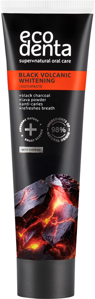 Ecodenta Black Volcanic Whitening Tandpasta (100ml) – Deze unieke zwartkleurige tandpasta combineert de natuurlijke kracht van actieve kool en vulkanische mineralen voor een effectieve en milde whitening-werking. De formule helpt onzuiverheden en verkleuringen effectief te