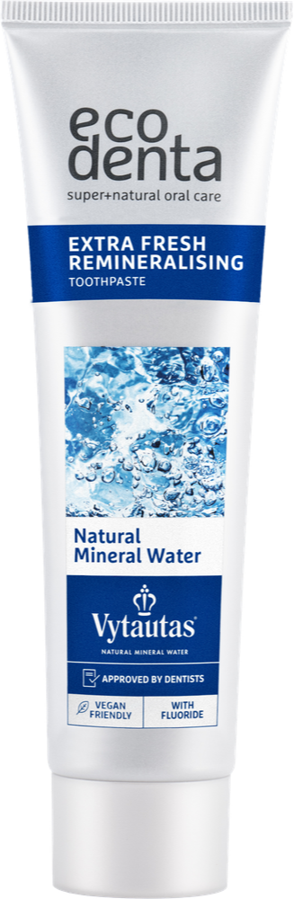 Ecodenta Extra Fresh Remineralising Toothpaste (100ml) – Deze tandpasta biedt intensieve frisheid én versterkt het tandglazuur dankzij de remineraliserende werking. Ideaal voor mensen die gevoelig zijn voor tandbederf of hun tanden extra bescherming willen bieden tijdens de