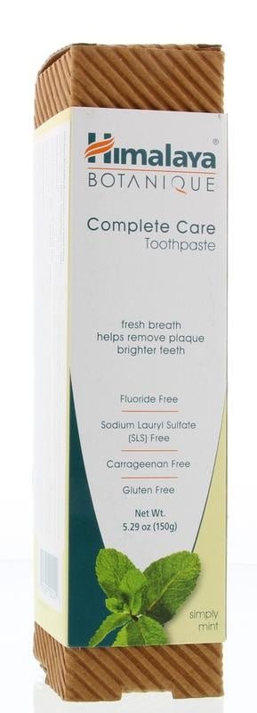 De Himalaya Botanique kruidentandpasta’s bevatten biologische ingrediënten. Deze Complete Care tandpasta met een sterke mix van Neem, granaatappel en mint geeft je mond een fris gevoel. Door regelmatig te poetsen helpt deze kruidenformule bij het verwijderen van tandplak, zorgt voor gezond tandvlees en behoudt witte tanden.
