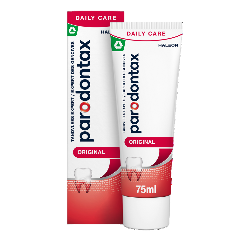 Parodontax Original Tandpasta (75ml) is een effectieve fluoride tandpasta die helpt bij het voorkomen van tandvleesproblemen. Deze tandpasta draagt bij aan gezonder tandvlees en sterkere tanden. De formule is titanium dioxide-vrij en wordt geleverd in een milieuvriendelijke