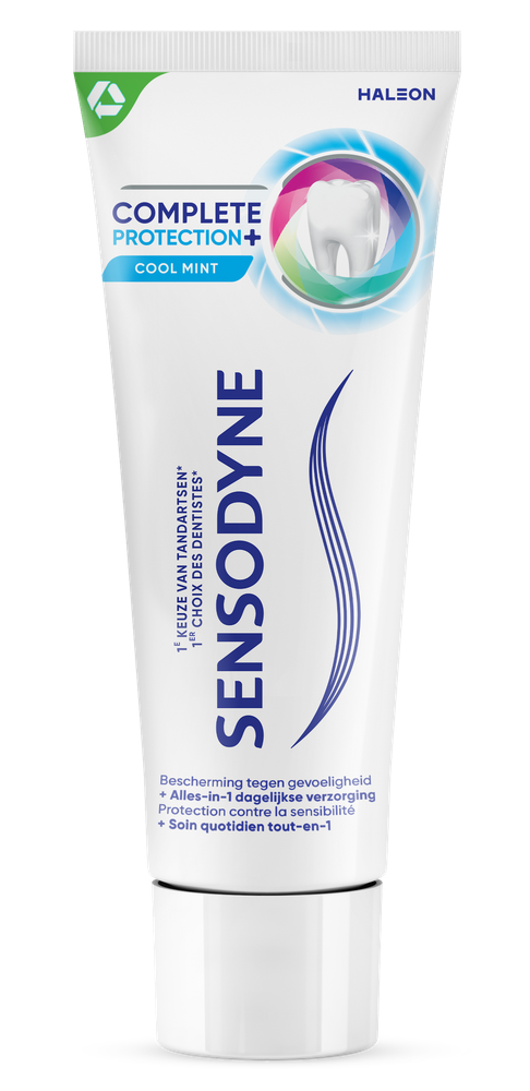 Sensodyne Complete Protection + Cool Mint tandpasta is een alles-in-1 dagelijkse verzorging bij gevoelige tanden. Het verzorgen van gevoelige tanden mag niet ten koste gaan van andere belangrijke mondverzorgingsvoordelen. De Sensodyne Complete Protection + dagelijkse