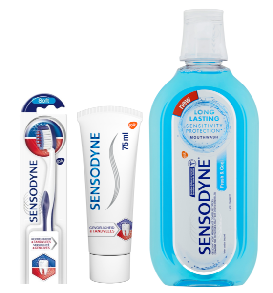 Sensodyne Gevoelige Tanden Bundel is een combiproduct met Sensodyne Sensitivity & Gum Soft Tandenborstel, Sensodyne Gevoeligheid en Tandvlees Tandpasta en Sensodyne Fresh & Cool Mondwater.Sensodyne Sensitivity & Gum Soft Tandenborstel is speciaal ontwikkeld voor