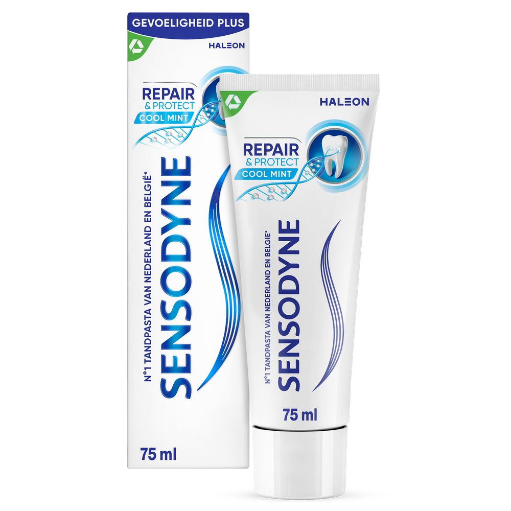 Sensodyne Repair & Protect Cool Mint Tandpasta is een tandpasta voor dagelijks gebruik die speciaal ontwikkeld is om gevoelige en kwetsbare delen van uw gebit te herstellen. De klinisch bewezen werking van de NovaMin-Technologie, welke het blootgelegde tandbeen beschermt