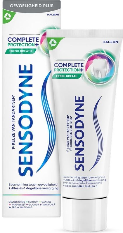 Verzorg je mond met Sensodyne Complete Protection + Fresh Breath. Verlicht tandgevoeligheid, versterkt glazuur, helpt tandvleesproblemen voorkomen én geeft langdurige frisheid. Voor complete mondverzorging en een zelfverzekerde glimlach!