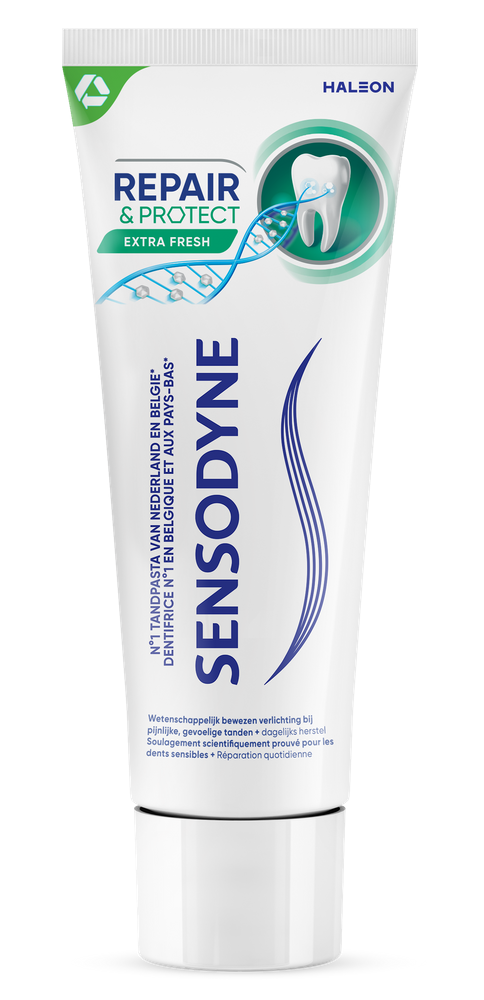 Sensodyne Tandpasta Repair & Protect Extra Fresh 75ml is speciaal ontwikkeld voor mensen met gevoelige tanden die niet alleen verlichting van pijn zoeken, maar ook hun tanden willen herstellen en beschermen.
