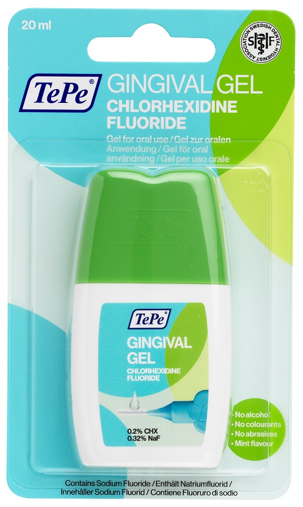 TePe Gingival Gel (20ml) combineert de voordelen van chloorhexidine en fluoride om de tanden en het tandvlees dubbel te beschermen. De chloorhexidine in deze gel gaat bacterieaanslag (o0k wel tandplak) tegen, terwijl de fluoride ervoor zorgt dat het glazuur van het gebit