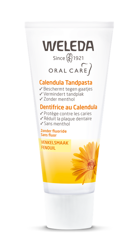 Weleda Calendula Tandpasta is een 100% natuurlijke en vegan tandpasta met calendula-extract wat zorgt voor een gezonde mondholte en helpt kleine weefselbeschadigingen snel te herstellen. Het toegevoegde mirre-extract heeft een zuiverende werking. Aan de tandpasta zijn geen